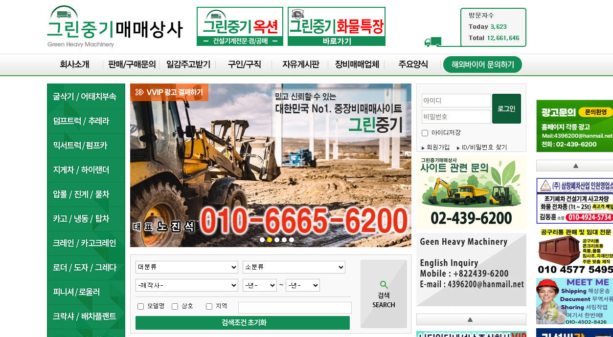 | 그린중기 | 국내 최대 규모, VIP 회원 서비스 제공 | 매매, 위탁판매, 장비업체 정보 |